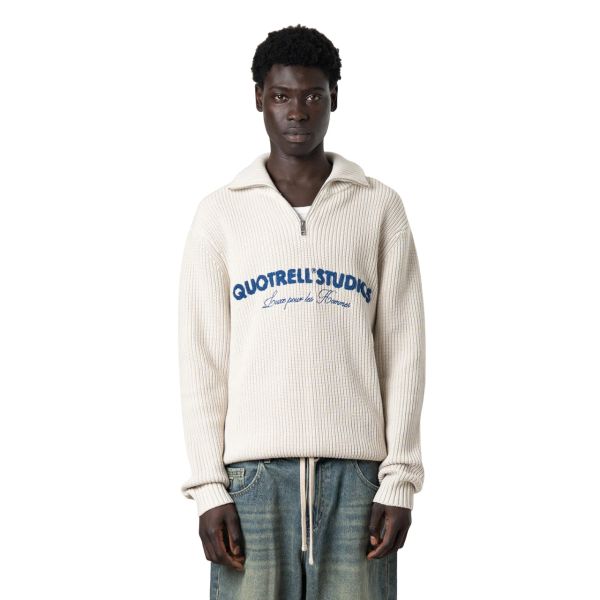 • De zipped sweater van Quotrell in de kleur beige is gemaakt van katoen.