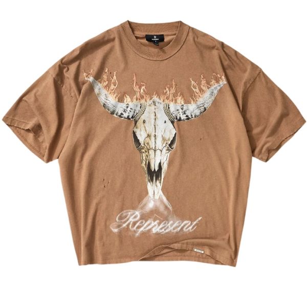 • Das T-Shirt von Represent in der Farbe braun ist aus Baumwolle gefertigt.