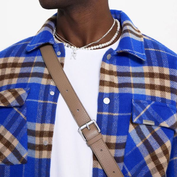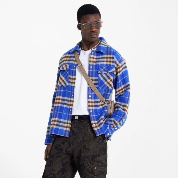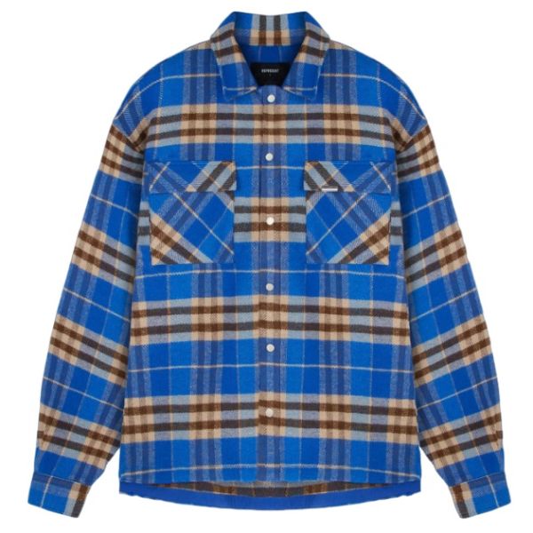 Represent Intial Print Flannel Overshirt Kobalt