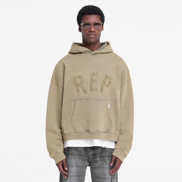 • Kapuzenpulli mit Distressed 'Rep Applique' Logodruck auf der Vorderseite.