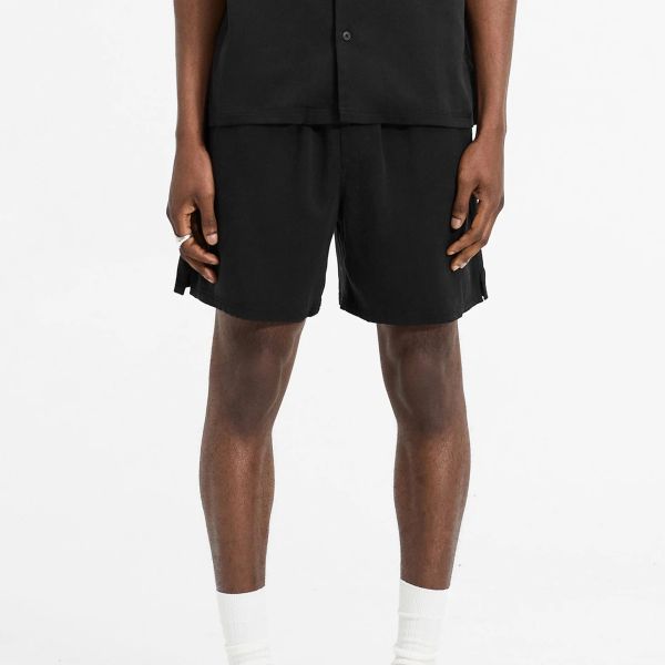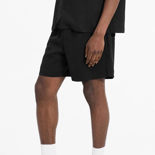 • Repräsentative Shorts in der Farbe schwarz sind aus Lyocell gefertigt.