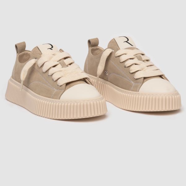 • Der Trainer von Rhun in der Farbe Beige ist aus Segeltuch gefertigt.