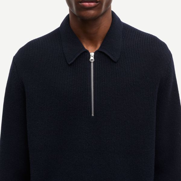 • Der Polopullover von Samsøe Samsøe in der Farbe navy ist aus Wolle gefertigt.