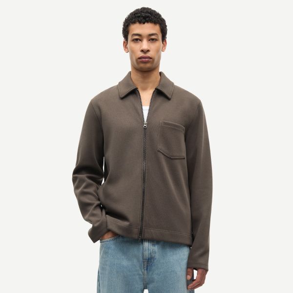 • Mit Kragen und Doppelreißverschluss.