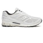 - Saucony's Trainer in Weiß ist aus Leder, Mesh und Gummi gefertigt.