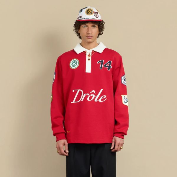 Drôle De Monsieur Langarm-Poloshirt Rot