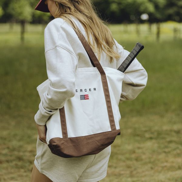 • Tasche mit The Mercer-Logoaufdruck auf der Vorderseite.