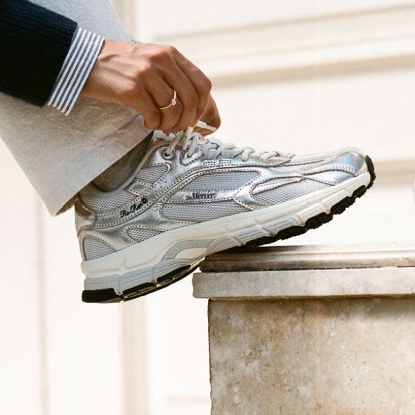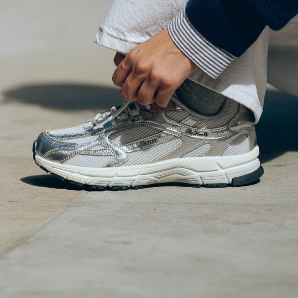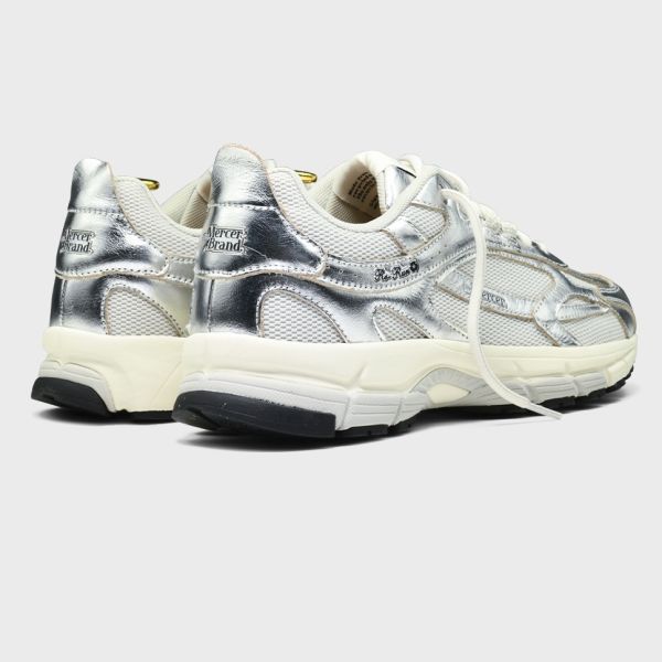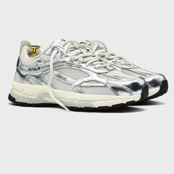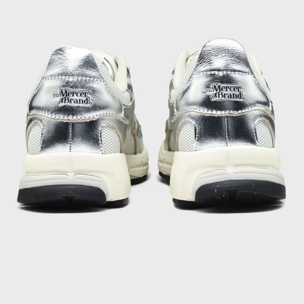 • Der Trainer von The Mercer Brand in Silber/Grau ist aus Leder und Mesh gefertigt.