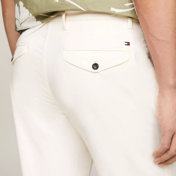 • Die Chino von Tommy Hilfiger in der Farbe Off-White ist aus Baumwolle, Leinen und Elastan gefertigt.