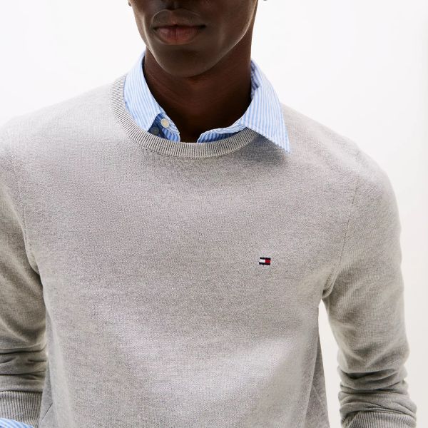 • Der graue Pullover von Tommy Hilfiger ist aus Baumwolle gefertigt.