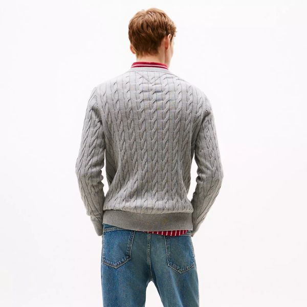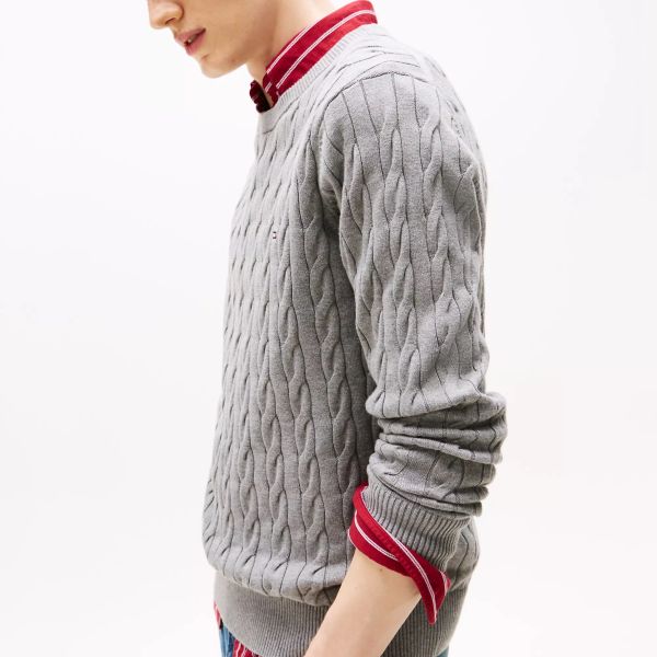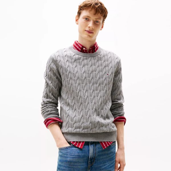 Tommy Hilfiger Klassischer Kabelpullover aus Baumwolle Grau