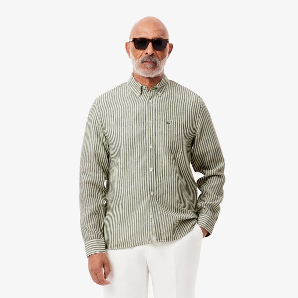 Gestreiftes Leinenhemd Dunkelgrün/Weiß