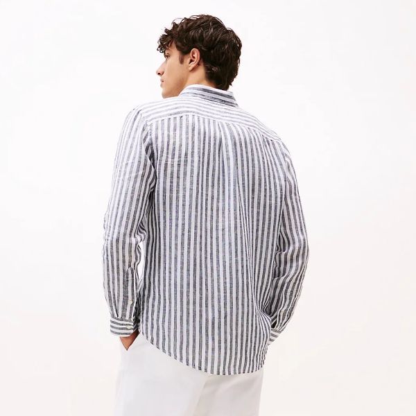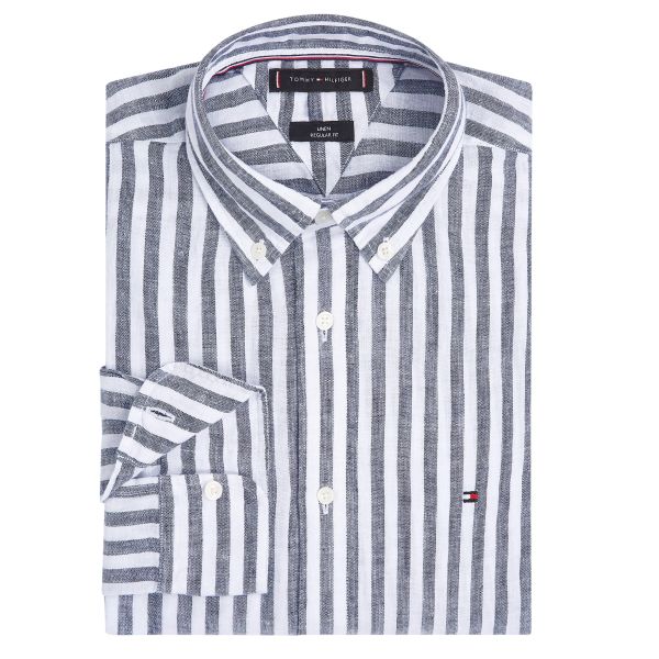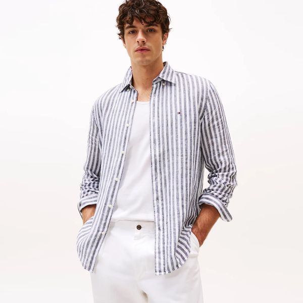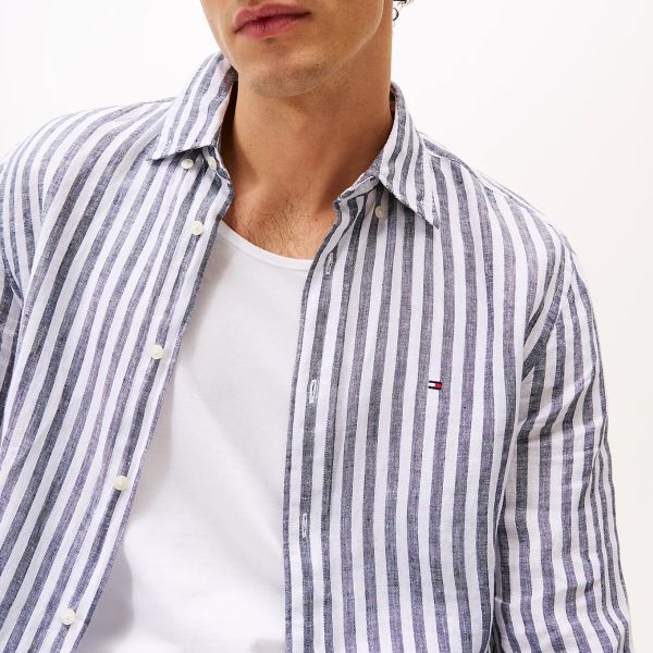 Tommy Hilfiger Leinen Essential Stripe Hemd Marine/Weiß