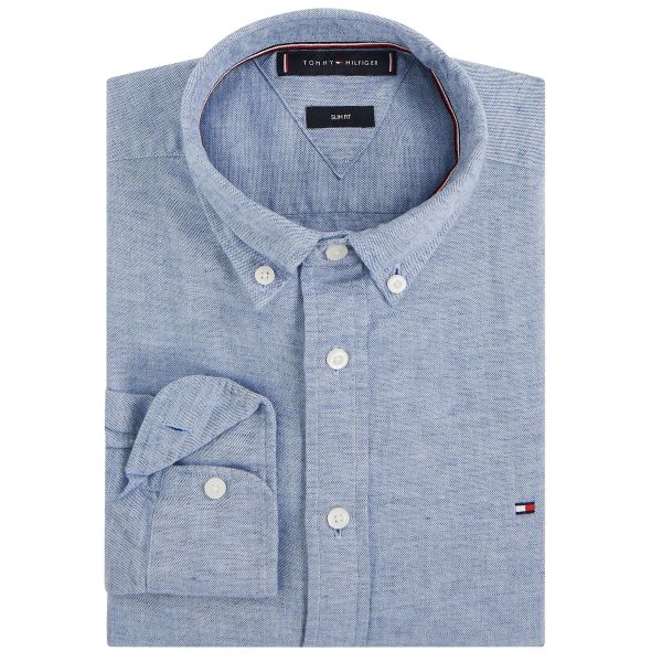 • Das navyfarbene Hemd von Tommy Hilfiger ist aus Leinen gefertigt.