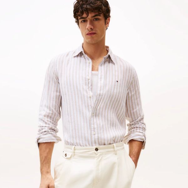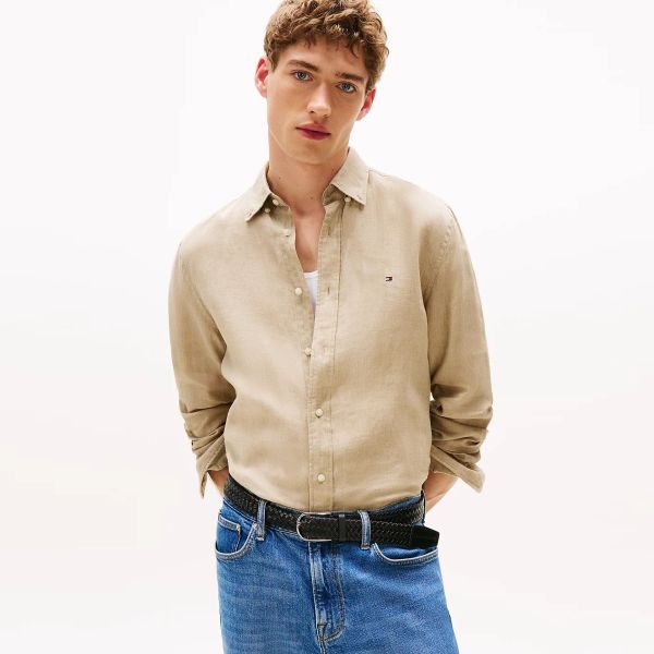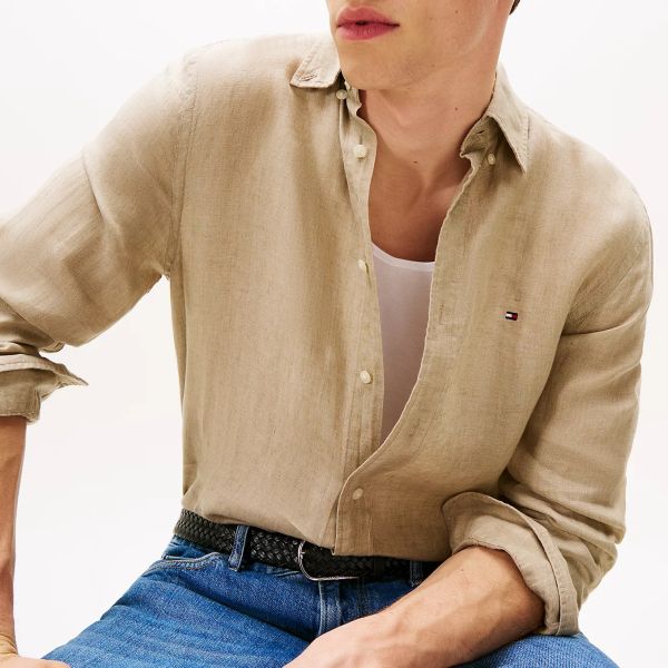 • Das Hemd von Tommy Hilfiger in der Farbe Beige ist aus Leinen gefertigt.