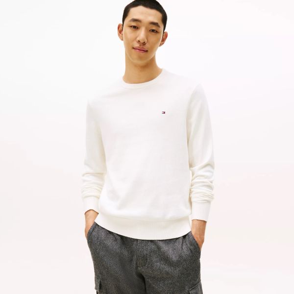 • Der Pullover von Tommy Hilfiger in der Farbe off white ist aus Baumwolle und Wolle gefertigt.