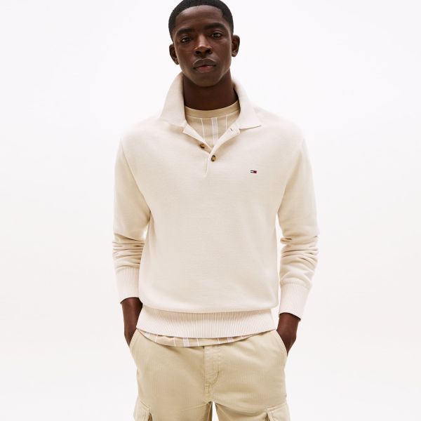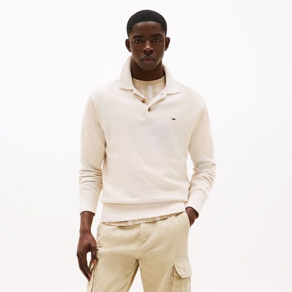 • Der Polopullover von Tommy Hilfiger in der Farbe Beige ist aus Baumwolle gefertigt.