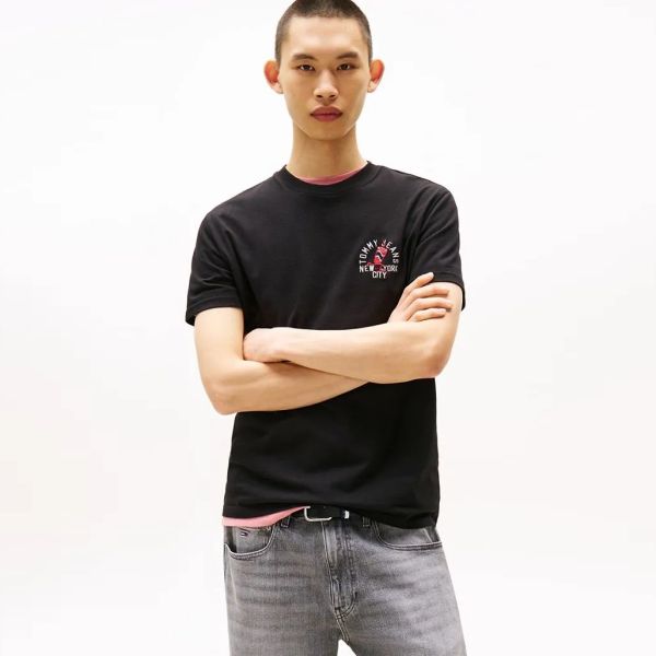 • T-Shirt mit Tommy Jeans 'New York City Motif'-Logoaufdruck auf der Brust.