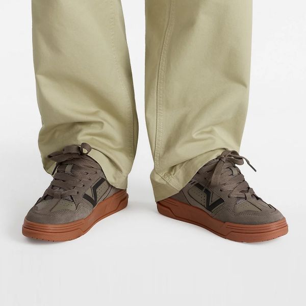 • Der Turnschuh von Vans in dunkelgrüner Farbe ist aus Leder & Synthetikmaterial gefertigt.