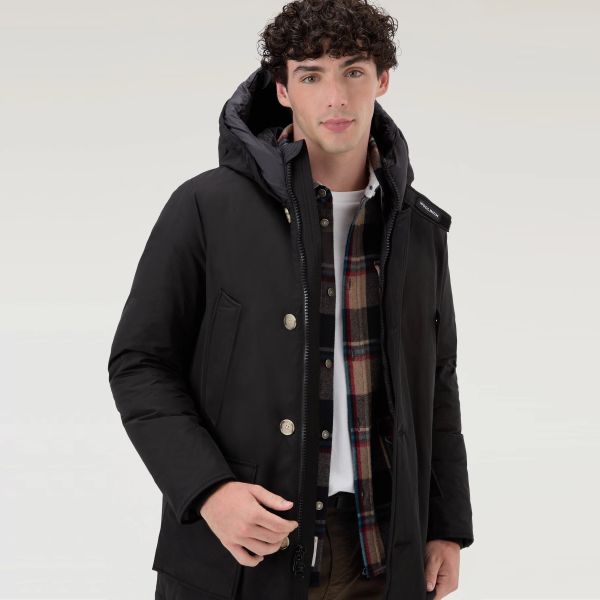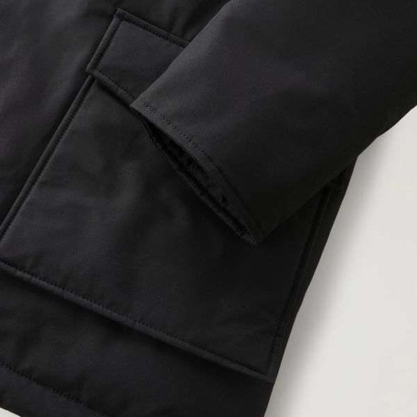 • Der Parka von Woolrich in der Farbe Schwarz ist aus Baumwolle und Polyamid gefertigt.