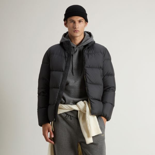 • Der Puffer von Woolrich in der Farbe Schwarz ist aus Polyester und Polyamid gefertigt.