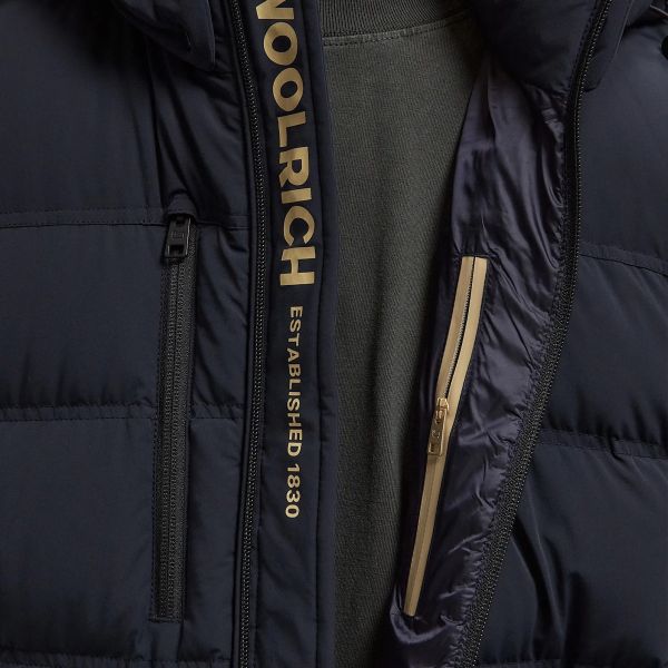 • Der Puffer von Woolrich in der Farbe navy ist aus Polyamid und Elastan gefertigt.